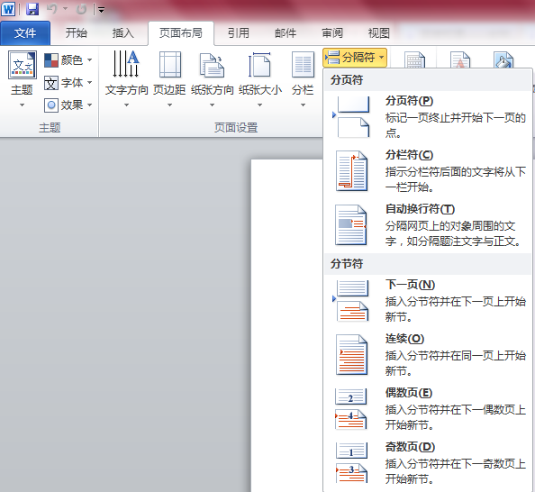 页面布局——页面设置——分隔符,分隔符有很多种,看你的用途了,具体也不好说,自己看着选择就行啦