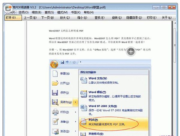 1直接来说,有的word2007可以直接点击office按钮里的另存为那里有“PDF或XPS”,或者“其他格式”里有: