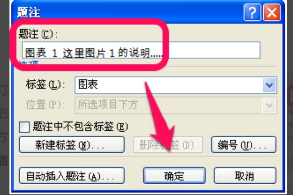 4、点确定就OK了。其他图表用同样方法选择标签就可以统一编号了,另外选中标签右键单击也会出现题注菜单。