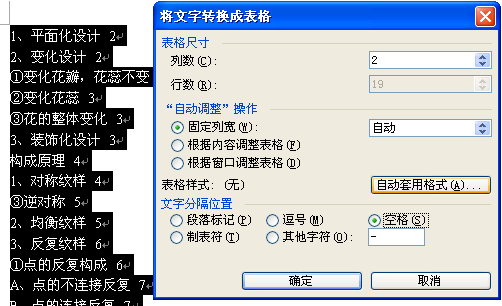 可以将后面每一个索外的标题如:X轴指令倍乘比,格式设为“标题1/2/3”,然后“插入”>>“索外”>>“索引和目录”,选择目录,格式选择“无”,即无中间的省略号。生成目录后,选择标题与页码之间的空格,复制,“编辑——替换”,粘贴,换成空格,将目录区域选定,复制,选择“编辑”菜单,“选择性粘贴”,“无格式文本”,“确定”。选定目录区域,“表格”菜单,转换>>文本转换成表格,LZ试一下这样可以不。
