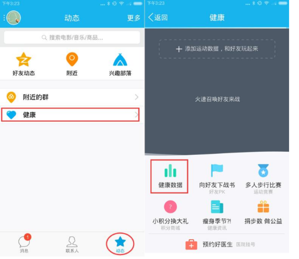 1.请打开手机QQ,打开QQ运动,健康功能,默认是没有开启的,登录手机QQ后到动态——右上角更多中添加健康,添加完成后点击就可以进入QQ运动了。