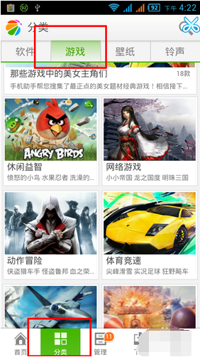 2、第二步,找到游戏分类进行下载即可。