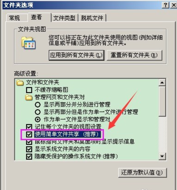 2、去掉“使用简单文件夹共享(推荐)”选项。