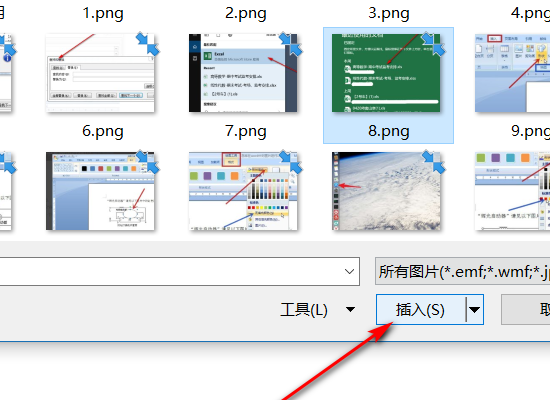 4、选择一张图片,并在对话框下部点击“插入”按钮。