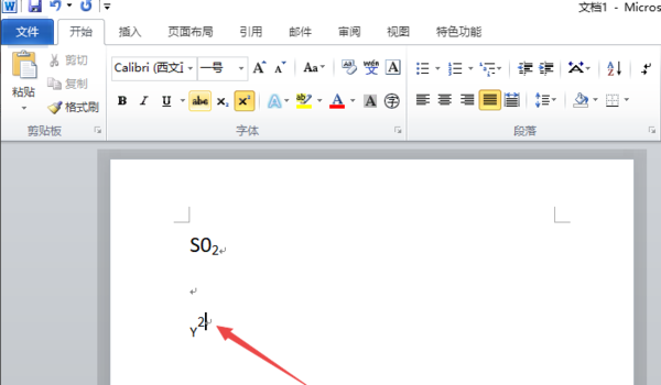 二、通过开始选项卡中的字体上的上标按钮设置