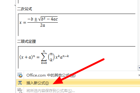 2、然后在弹出来的窗口中点击打开“插入新公式”。