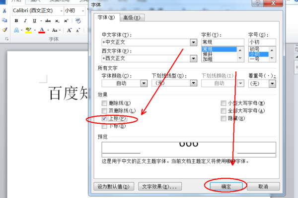 6、弹出的界面,我们点击勾选上上标,然后我们点击确定;