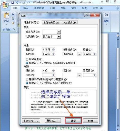 如何将Word中将全文段落设置为首行缩进2字符