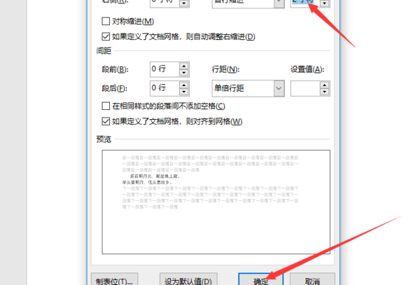6、然后设定首行缩进的字符之后确定。