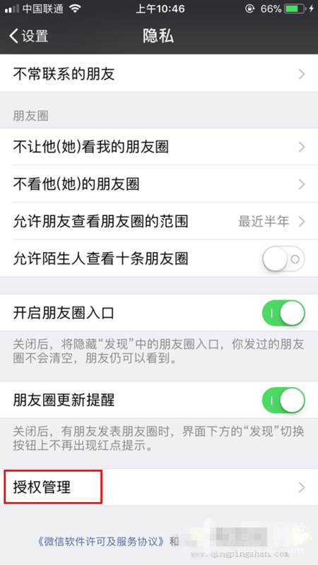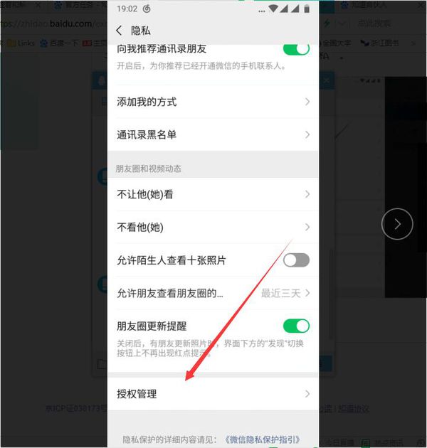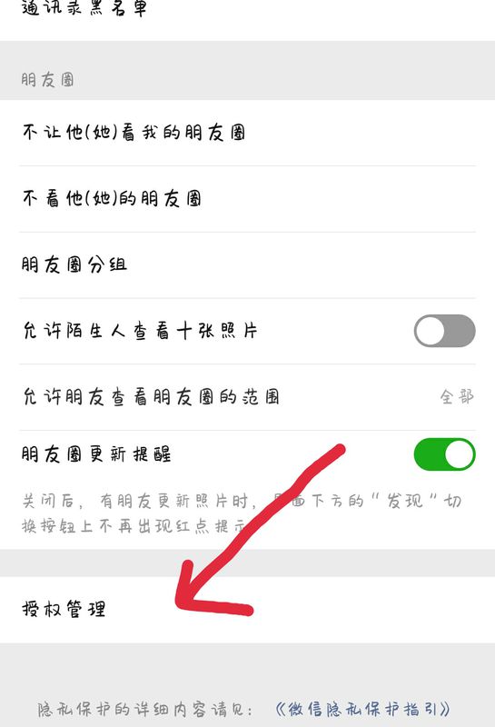 4.在“隐私”界面的最下方找到“授权管理”并点击进去,如下图所示: