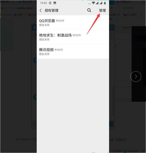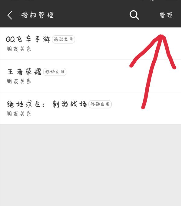 5.在这里可以看到你的微信授权列表,点击右上角的“管理”,如下图所示: