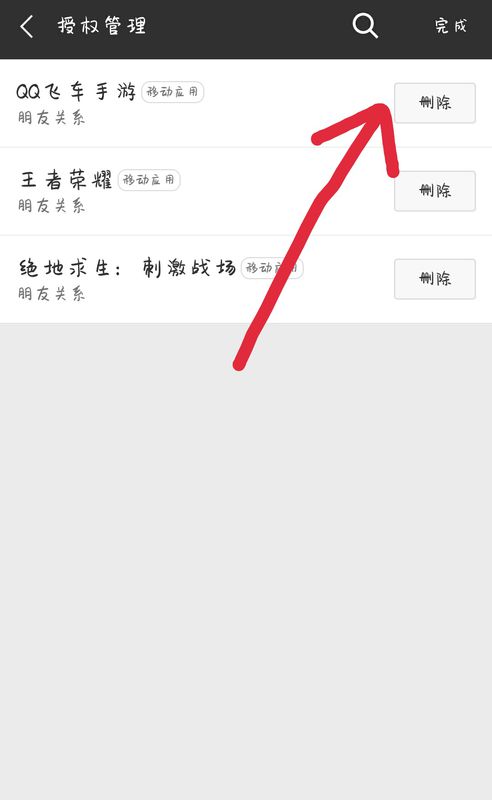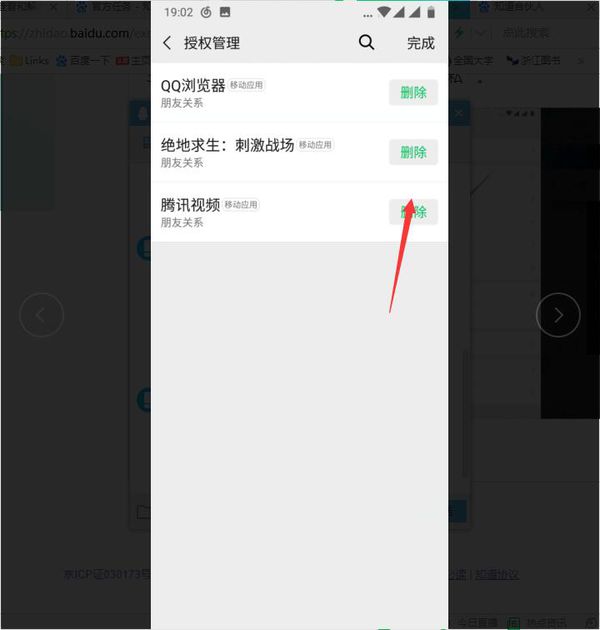 6.选择你想取消的授权列表,点击它所对应的“删除”按钮,如下图所示: