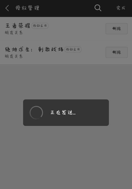 7.然后会出现“正在发送”的字样,成功之后对第三方的授权就取消了。如下图所示:
