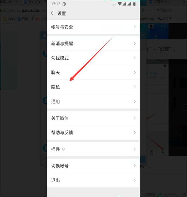 3、接下来在页面中选择红色箭头所指处的“隐私”。