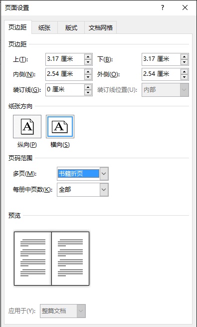 3、您的页面设置中,页码范围选择成了书籍折页,请选回到普通。