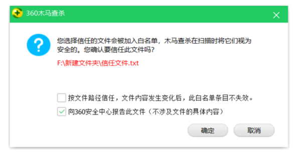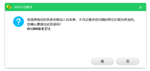 确定添加到信任目录,让电脑管家不再对此文件进行查杀。