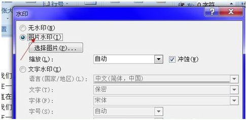 4、点图片水印,选择图片;