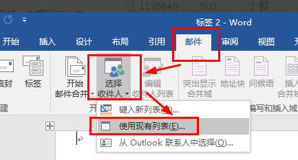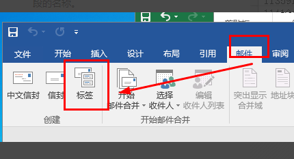 2.创建一个word文档,选择标签文档,邮件/标签。