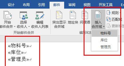 5.选择需要的字段,插入合并域/依次选择需要的字段。这样就解决了word文件怎么打印出来了标签的问题了。