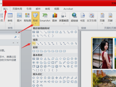 7、点击上方的插入形状,插入一个直线线条。