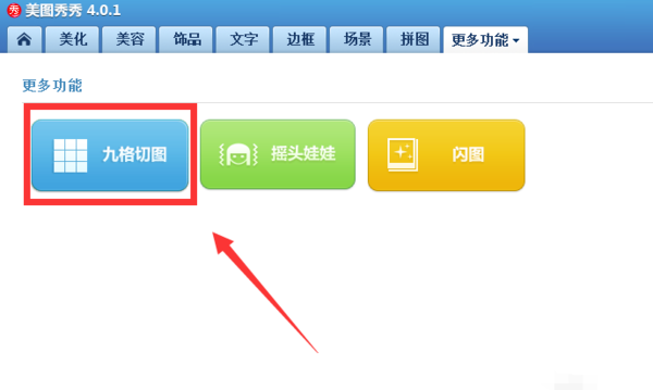 4.在更多功能中,点击【九格切图】。