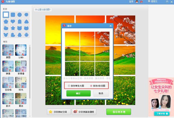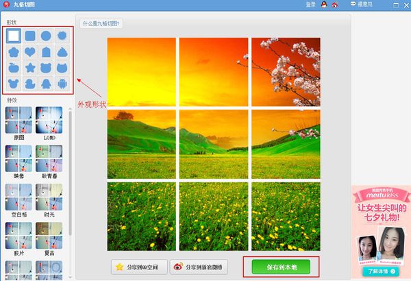 3、在九格切图中,你可以选择切图的外观形状。选择好之后,点击保存到本地。