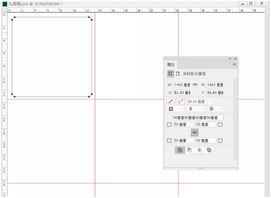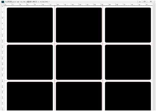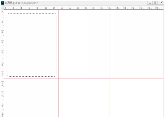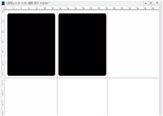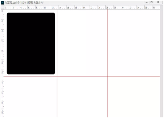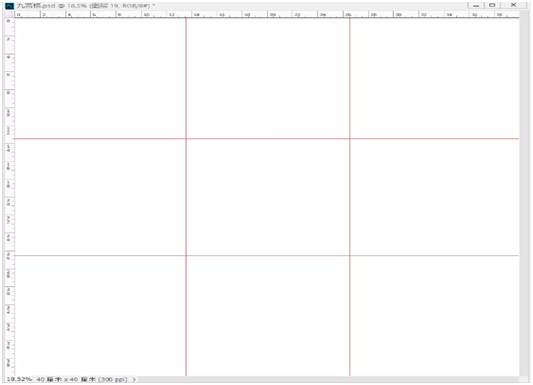 2、拉出四条辅助线(横二纵二),将背景分为大小一致的九块;