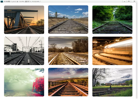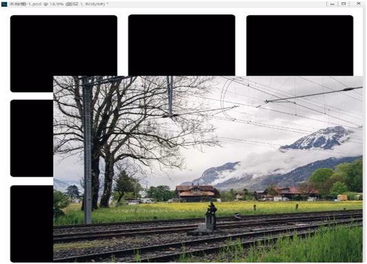 12、在菜单栏执行:图层 - 创建剪贴蒙版,给铁轨素材创建剪贴蒙版;