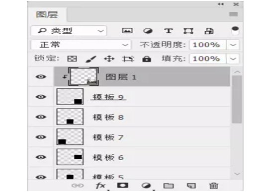 3、执行快捷键:Ctrl+Shift+N 新建一个空白图层,重命名为模板1;