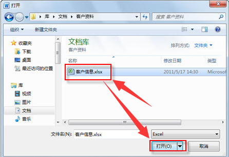 7、浏览选择记录客户信息的Excel表格(前提是,已将Outlook中的客户联系人导出到了该表格中,且将“经理”和“总经理”级别的客户信息单独放置在了工作簿的左数第1张工作表中),单击【打开】按钮。