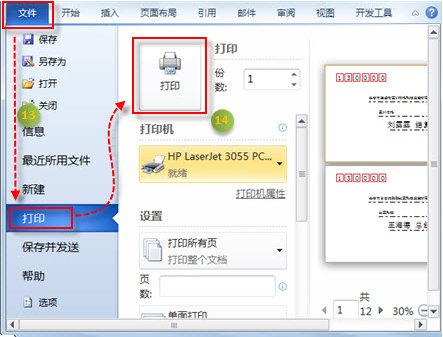 9、在向导的最后一个页面中,单击【完成】按钮。此时,系统将自动批量生成包含寄信人、收件人信息的信封。将批量生成的信封打印到纸质信封上。单击“文件”选项卡,打开后台视图,并切换到“打印”视图中。