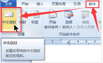 1、打开Word 2010,切换到“邮件”选项卡,在“新建”选项组中单击【中文信封】按钮。