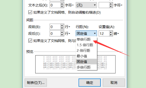 第2步,在Word菜单栏依次单击“格式”→“段落”菜单命令,打开“段落”对话框。在“行距”下拉菜单中选中“固定值”,并将“设置值”调整为“1”。设置完毕单击“确定”按钮