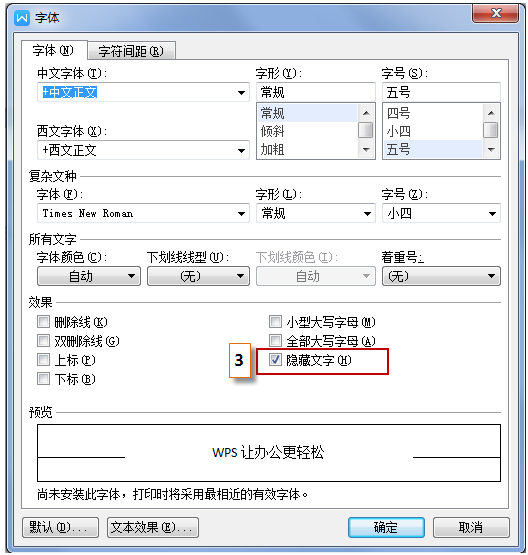 2、在字体格式设置框中,勾选“隐藏文字”。