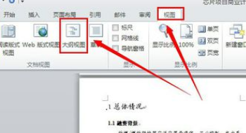 2、要删除该空白页,首先得找到分隔符(分页符)。具体做法是找到“视图”,在视图的功能区找到“大纲视图”。这个过程不难,只需要我们找到菜单中的按钮就可以打开了。