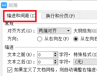 4.点击“段落”后,点击“缩进与间距”。