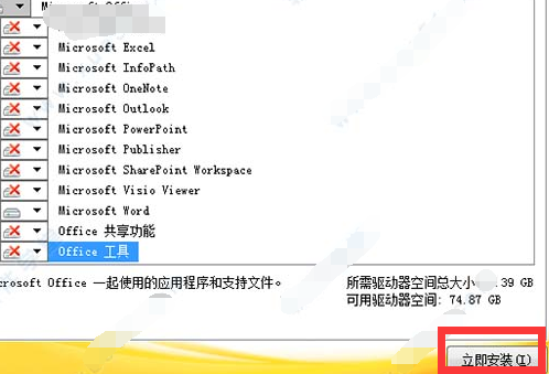 4、选择安装程序和安装位置。因为我们只需要安装word2010,所以手动将其他选项全都禁止,只留下word2010。安装位置建议安装在C盘除外的位置;