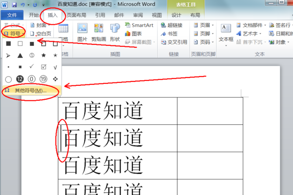 4.接着,点击插入选项后,弹出列表,在列表中选择“符号”。