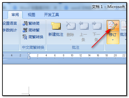 3、打开审阅工具以后,此时会看见“修订”栏是亮起的状态;