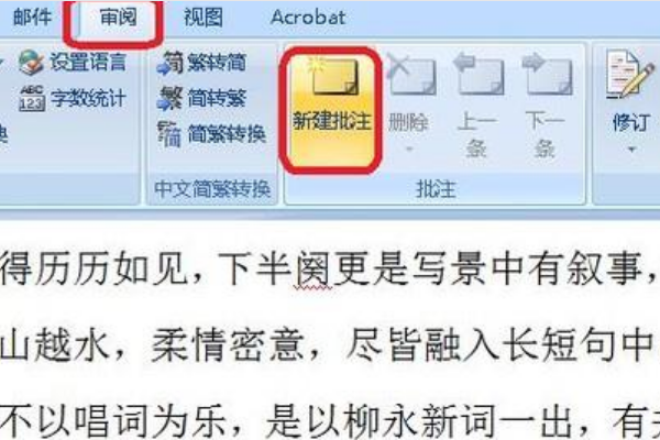 (1) 在“视图”菜单上,指向“工具栏”,然后单击“审阅”。这时工具栏中就会显示出“审阅”,如下图所示中间栏就是“审阅”: