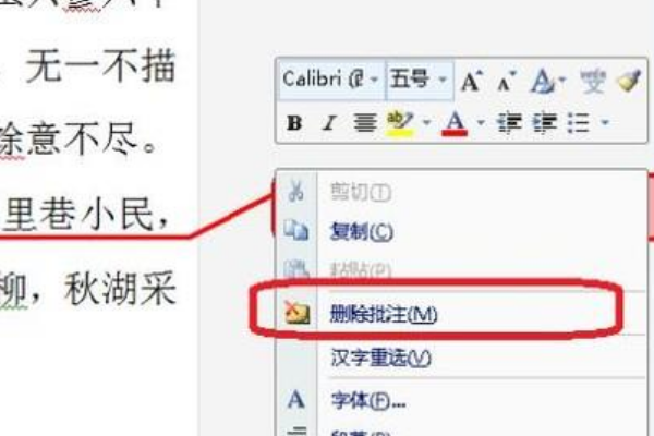 在想要删除的批注处单击鼠标右键,然后选择删除就可以了,