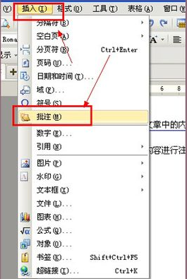 第五步:选择第二行前面两个字,在菜单栏找到插入打开下拉栏里的批注。
