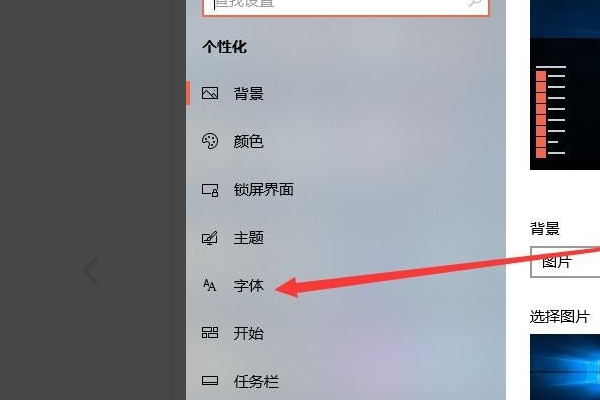 4、个性化页面中可以看到左侧导航中的字体设置选项,点击该导航选项。