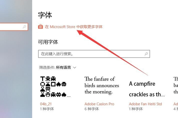 5、在该页面可以看到很多已经存在的字体,此时点击字体的左上角选择添加字体即可解决电脑软件中的字体出现乱码的问题。