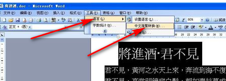 选中要转换的文字,菜单-〉工具-〉语言-〉中文简繁转换,选择简体转换繁体或者繁体转换简体,确定即可。