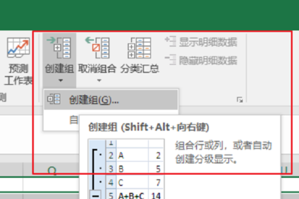 五、然后,在菜单栏找到“创建组”点击选中“创建组”。