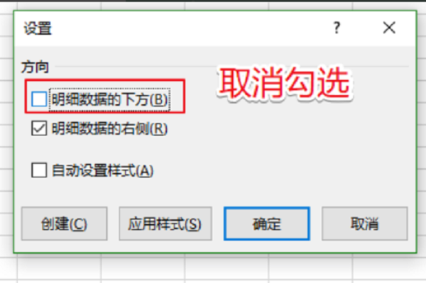 九、在窗口中点击勾选“明细数据的下方”,确定。