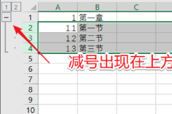 十、"+"与“-"在数据上方,excel 树型结构完成。