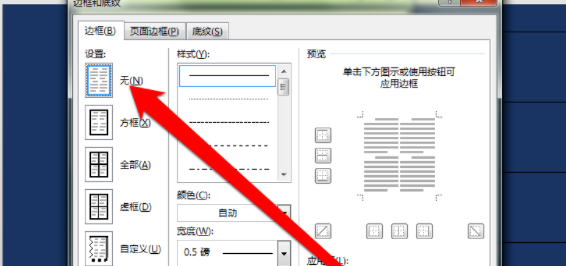 3、然后我们在弹出来的窗口中点击选择边框设置中“无”选项,回车确定就可以了。