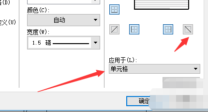 4.然后选择 自定义 ,点击预览 里面 斜线 选项,变成暗色,以及要加的边框线 单击确定。